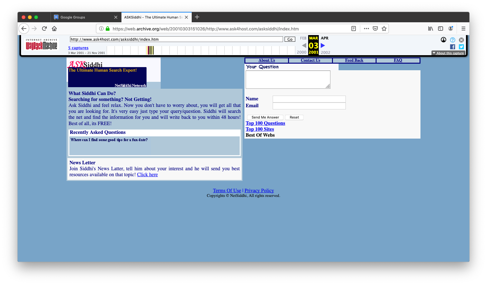 Siddharth Deshmukh then founder and owner of ask4host.com, started ASKsiddhi as a human search expert in 2001. asksiddhi.com later evolve as information, reference and news site with daily page views crossing 100,000 per day.