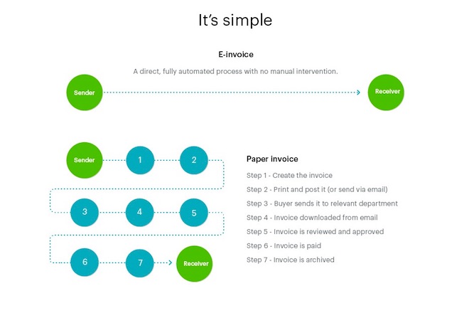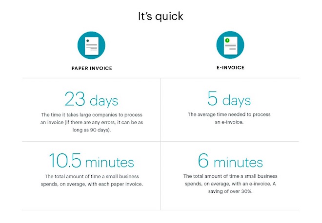 It takes 23 days (on average) to process a paper invoice and five days to process an e-invoice. The faster you invoice, the sooner you get paid. It’s that simple.