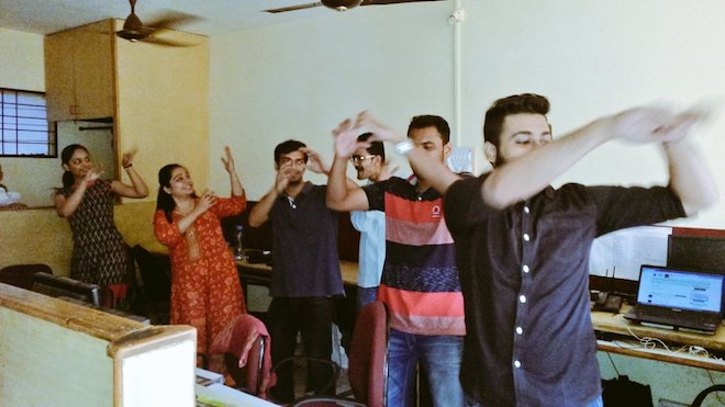 I asked her how she felt about the flash mob and I was again met with a shower of giggles which I smilingly waited to subside. She expressed enthusiastically how much she enjoyed dancing after so much time and how much of a stress reliever that was. She was every inch in love with the working holiday culture that ShimBi Labs had embraced and looks forward to more growth, fun, and learning. As mentioned earlier, she too stressed upon the importance of more technical sessions and how much the earlier one had already helped the employees.